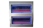 主要结构部件有盖、箱体、透明罩门、安装轨、导电排、进线护罩和母线挡板等,并设有中性线和接地端子排。外壳分全塑、塑面铁底、钢和不锈钢等,可根据需要选择。箱内电器元件全部采用宽度为9mm模数的模数化电器元件,安装于TH35-7.5型安装轨,根据需要可任意组合成各种不同的电路方案。安装容量有2-54单元。安装的电器元件手柄外露,便于操作,其他带电部件均遮盖于上盖内部,使用安全可靠。安装形式有明装(悬挂式)与暗装(嵌墙式)两种,暗装箱体备有预埋箱,便于用户安装使用。