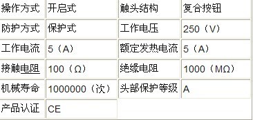 组合式 触头结构:复合按钮 防护方式:保护式 工作电压:220(V) 工作电流:5(A) 额定发热电流:5(A) 头部保护等级:IP55