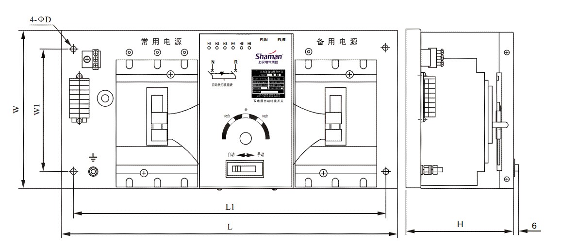 注:控制器类型可选 A型:其功能包括:手动-自动转换、失压与断相转换、转换延时设置。